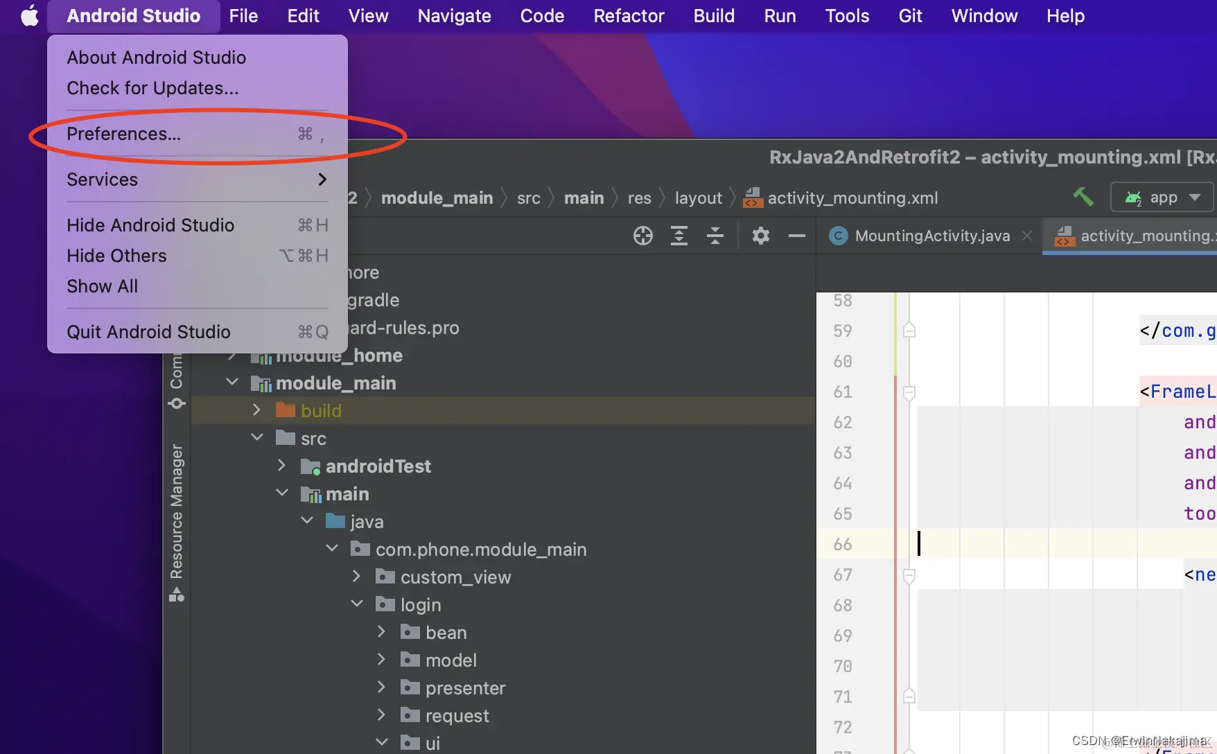(1) 步骤一:点击红圈处(这是Mac配置流程,Windows对应的按钮是Settings)