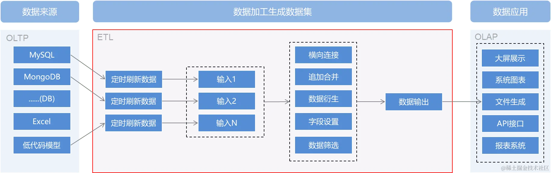 在整体的数仓架构中,数据集是在线加工的标准数据形态。