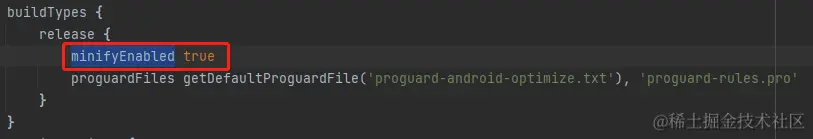 在WebView模块中,找到并打开build.gradle文件,将buildTypes中release块的minifyEnabled修改为true。