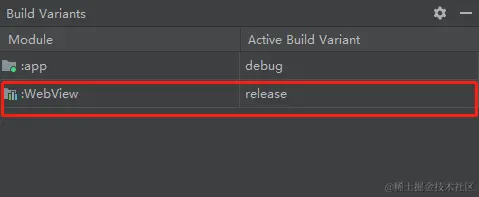 点击Build-->Select Build Variant...,在打开的界面中将WebView模块的Build Variant选择为release。