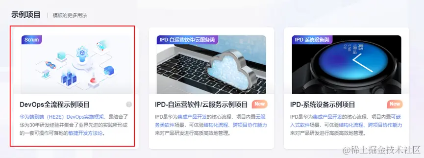 点击“创建项目”,选择示例项目中的“DevOps全流程示例项目”。