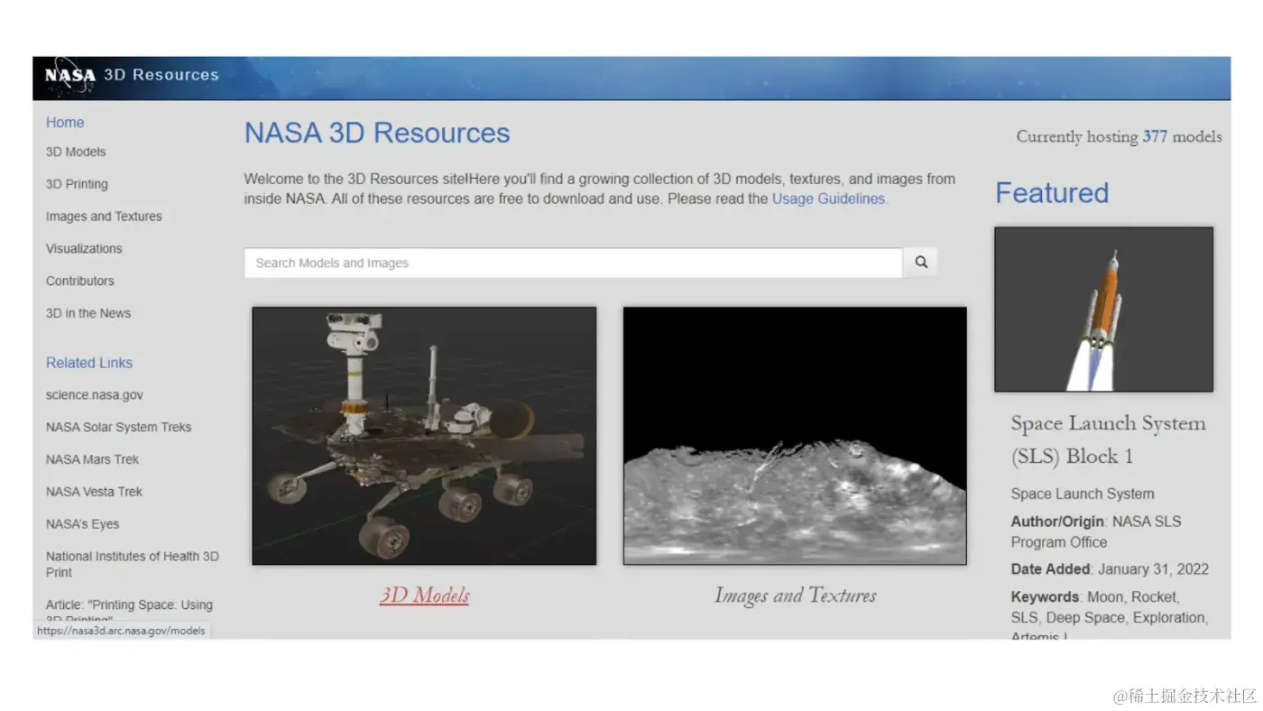 NASA 3D网站是一个在线门户,提供与太空和各种NASA任务相关的大量三维模型和模拟。该网站是用户友好的,并提供有关每个型号的详细信息。该网站允许用户探索和下载几种不同格式的模型,包括 OBJ、STL 和 FBX,只需单击下载按钮即可。