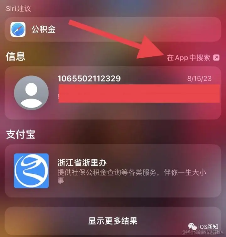 这个对象还会带一个 userInfo 字典,我们可以通过解析这个字典拿到当前用户输入的内容,之后进一步跳转到你的 App 对应的搜索页面,以让用户的搜索行为持续下去: