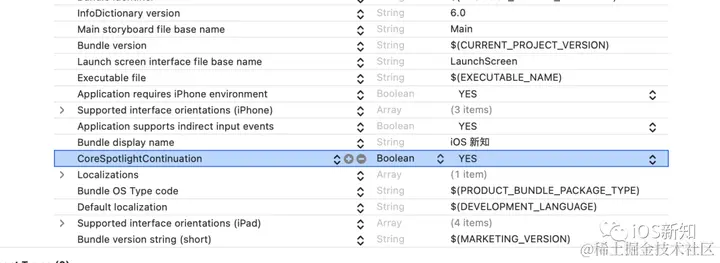 我查阅了相关的技术文档,发现实现非常简单,只需要在你的 info.plist 文件中增加一个 CoreSpotlightContinuation 的 key,值为 Bool 类型 true。
