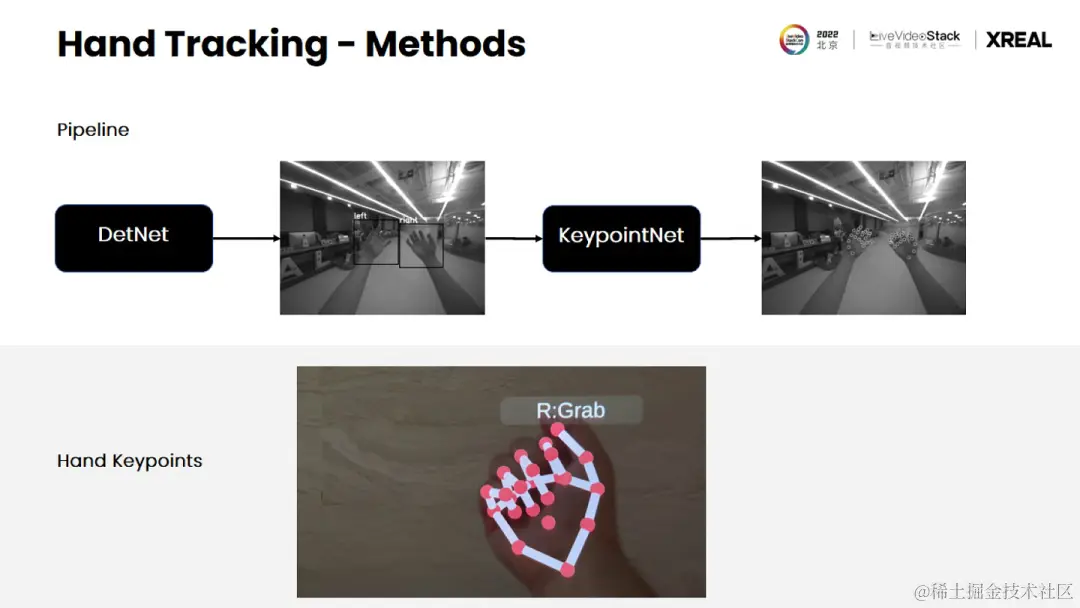 像刚才提到的手势追踪,它底层的原理就是通过计算机视觉技术先识别你的手,然后再追踪你的手势。然后追踪完了以后,你可以跟这些虚拟的物体进行交互。当然,这其实也是一个非常有挑战的问题。