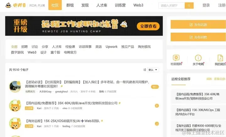 大家可以在秩序中自由交流相关内容信息,找到志同道合的人,同前面五个平台形式略有不同。其内容是传统与非传统的结合。或许比较小众,名不见经传,但是丝毫不要低估它的专业性哦~是许多自由职业者的挖宝小天地!说不定能够获得一些远程、外包、兼职等非主流的宝贵工作资源。
