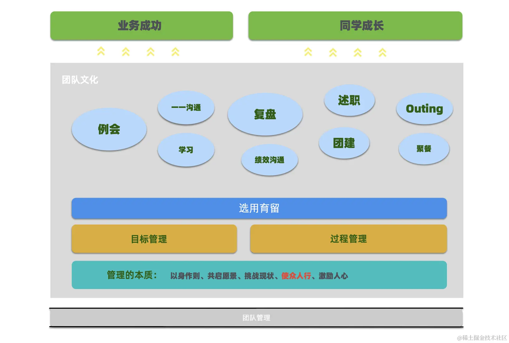 当然一个团队的管理除了上述之外,还应该有一种“团队文化”。也就是在大组织下的小团队氛围,构建一个良好的小团队的文化氛围,才是让同学们感知到组织文化沉浸式感觉,才有一个相互信任、互相帮助的气氛。我们团队基本上一个月一次聚餐,半财年室外团建还有一个财年的Outing。