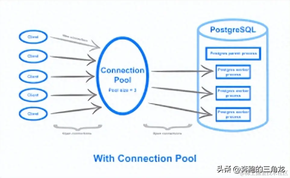 复用已存在连接的技术。避免连接反复创建、销毁,减少连接开销,提高连接效率。由数据库服务器维护一组已经建立好的连接,并将其保存在内存中。当客户端请示连接数据库时,数据库服务器从连接池中分配一个空闲的连接给客户端,并在客户端断开连接后将连接回收到连接池中。避免了每次都重新建立和销毁连接所带来的时间和资源消耗,并且可以控制并发连接数量。