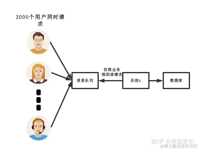 - 一种是请求来了就直接往MQ里扔,然后再由MQ的消费者按照节奏慢慢进行处理。