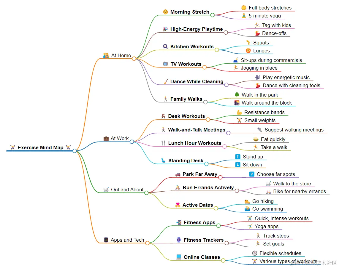 人类是视觉的动物,通过上万年的进化,我们识别图像并从中获取关键信息的能力比任何大语言模型都强。当你头脑风暴时,不妨要求 ChatGPT 用思维导图的方式系统地链接你的不同想法。这在项目规划、学术研究、个人发展或解决问题等场景中特别有用。通过清晰地展示这些联系,思维导图可以帮助你了解全局、确定任务的优先级、识别潜在的陷阱,甚至产生新的想法。