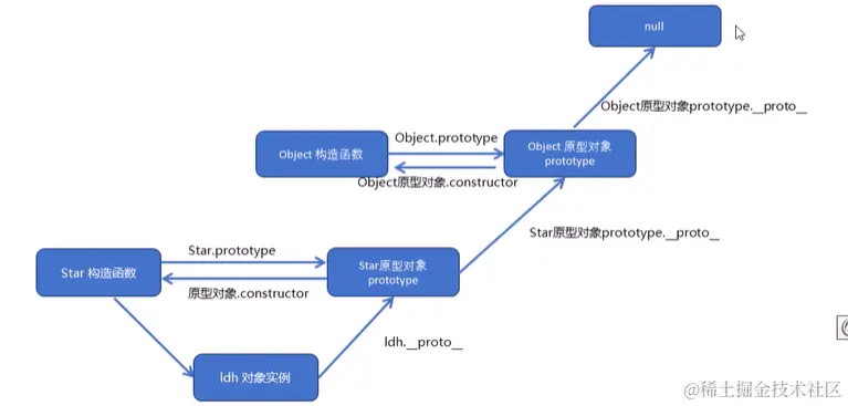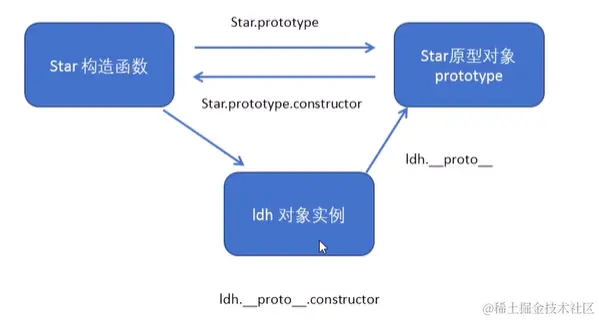 ldh对象实例的原型(__ proto __)可以找到它的对象原型——Star原型对象prototype;