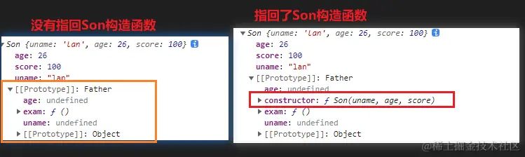 思考: 记得将constructor指回 Son构造函数 的原因是什么呢?