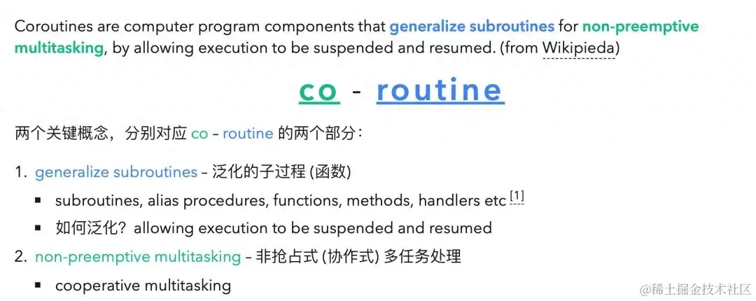 首先我们来看一下维基百科对协程的定义:
