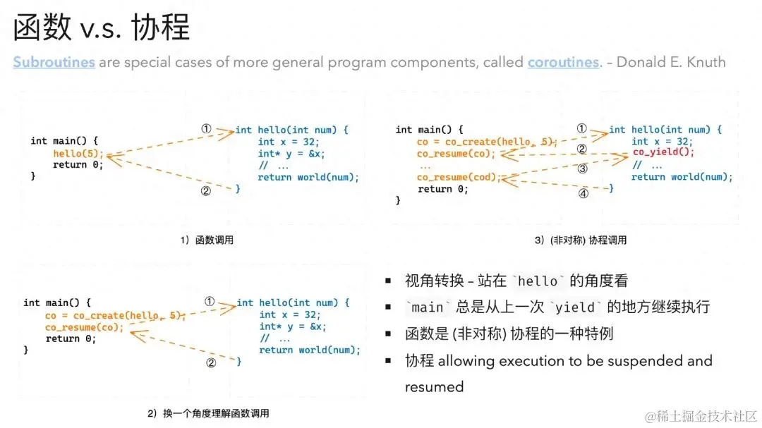 理解这一点,我们对于各种协程的分类,如对称/非对称协程、有栈与无栈协程,就能够更加明白其本质,而无需在实现细节上过于纠结。