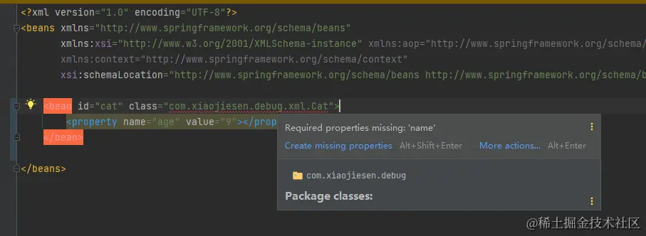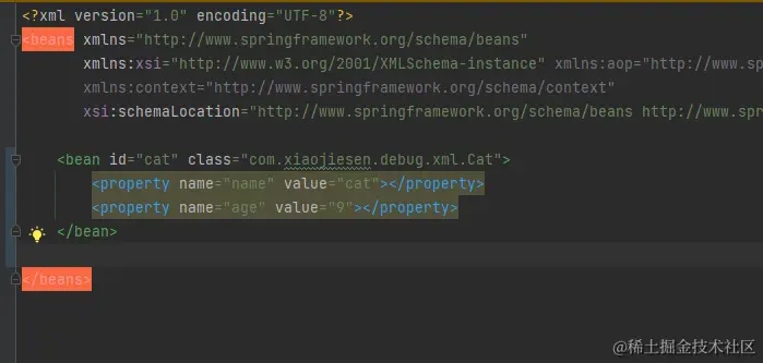<bean id="cat" class="com.xiaojiesen.debug.xml.Cat">