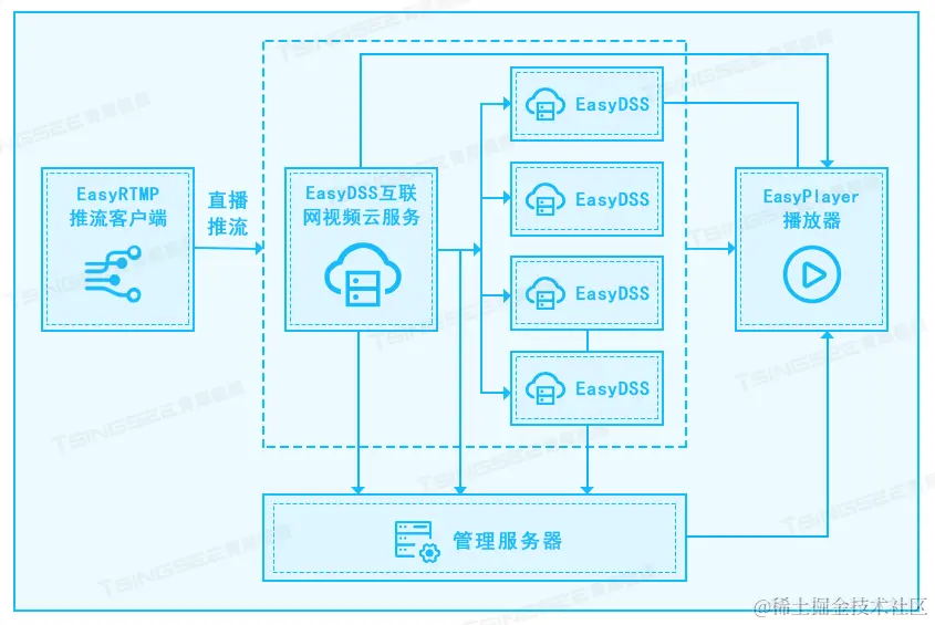 视频推拉流EasyDSS视频直播点播平台,集视频直播、点播、转码、管理、录像、检索、时移回看等功能于一体,可提供音视频采集、视频推拉流、播放H.265编码视频、存储、分发等视频能力服务。