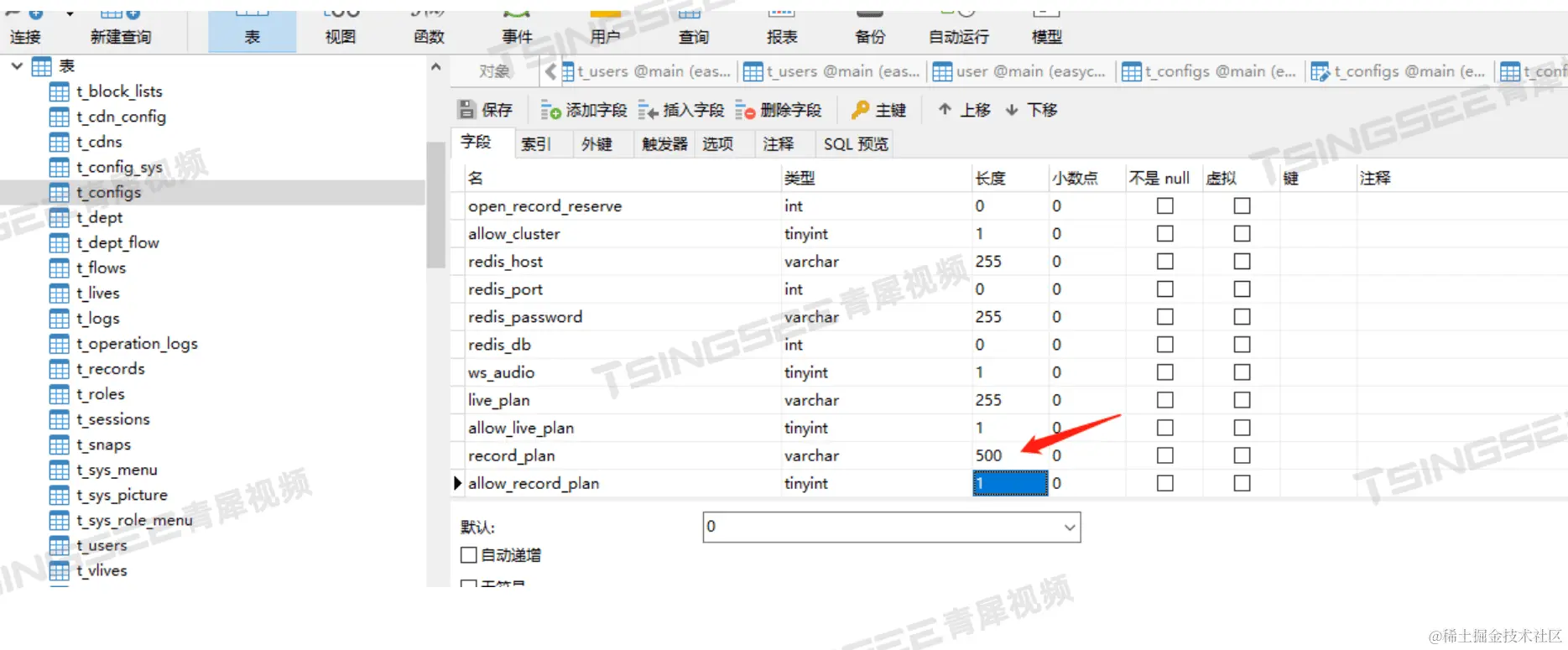 可以看到,在数据库中当前该字段长度是1,只需将长度改成255保存生效,修改后验证后就可正常保存录像片段。