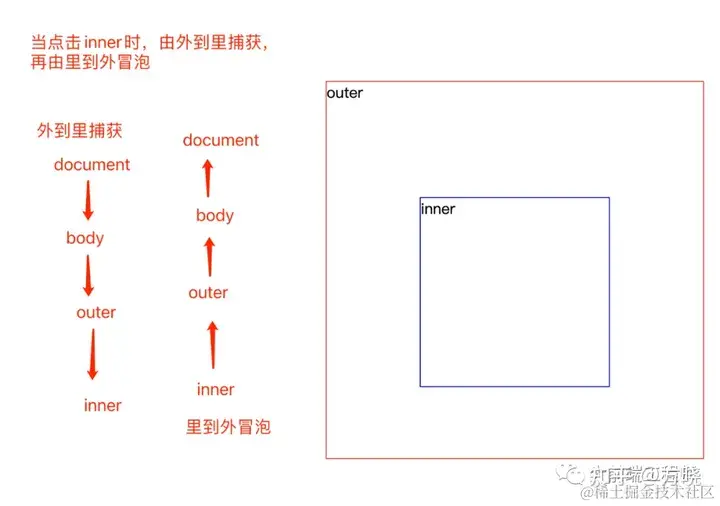 外到里执行事件捕获,inner获取到元素嵌套路径