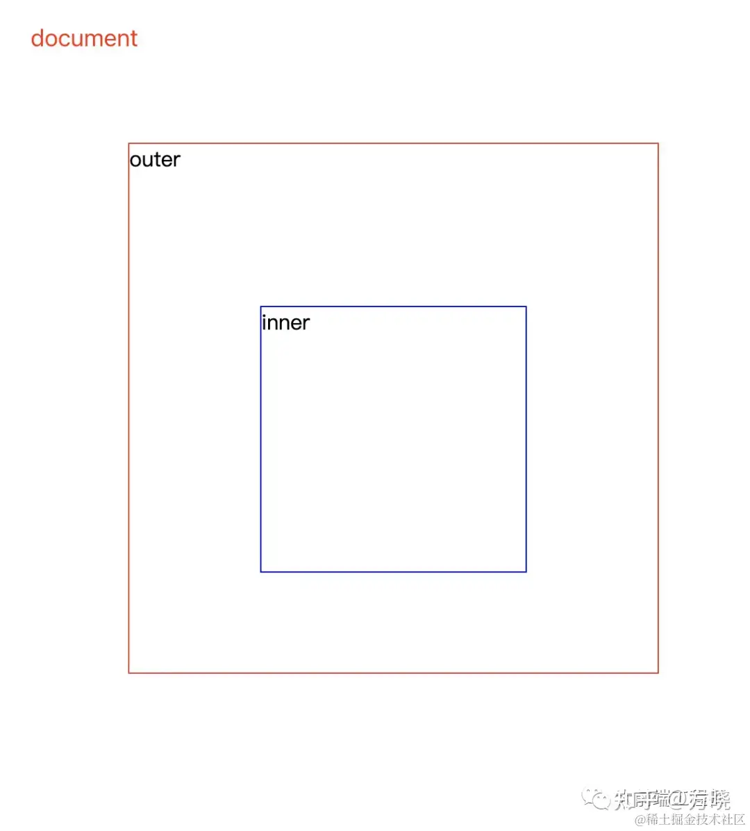写一个元素嵌套的例子, document → outer → inner