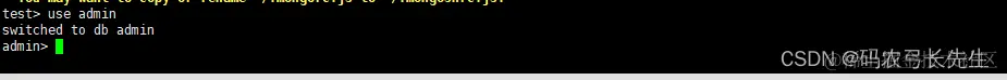 默认进入的是test数据库,可以使用use 命令切换数据库