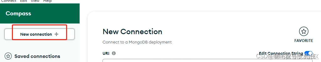 进入compass客户端点击 new connection。我的compass版本是1.36.4,别的版本可能会有一些不一样。