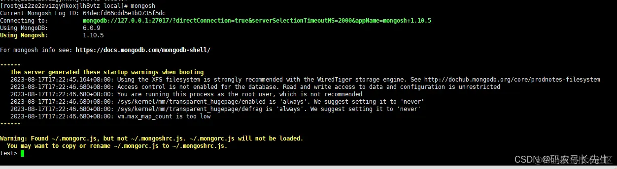 当前MongoDB最新的版本是7.0,刚开始我也是准备安装7.0,在安装时才发现7.0版本要求glibc2.25以上的版本,然后我试着去升级glibc2.25又发现python、make等都要升级,在我升级glibc2.25时出现各种问题,比如说修改了libc.so.6软连接导致很多命令都用不了,最后我还是放弃安装7.0选择了低一个版本6.0进行安装,之前在网上有人就提醒过不要轻易的升级glibc库不然你的服务器就要看你的造化了。我得出的结论就是,我们在安装时需要先了解自己服务器的版本信息后再根据服务器的版本选择相应的MongoDB版本。如果必要使用最新版本建议有专业运维人员介入进行安装。
