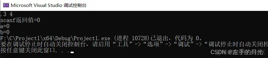printf("scanf返回值=%d\n", scanf("%d %d", &a, &b));