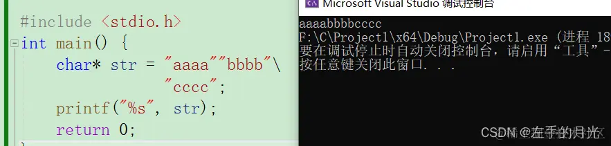 由“” 包围的字符串放在一起,会自动拼接一个字符串;