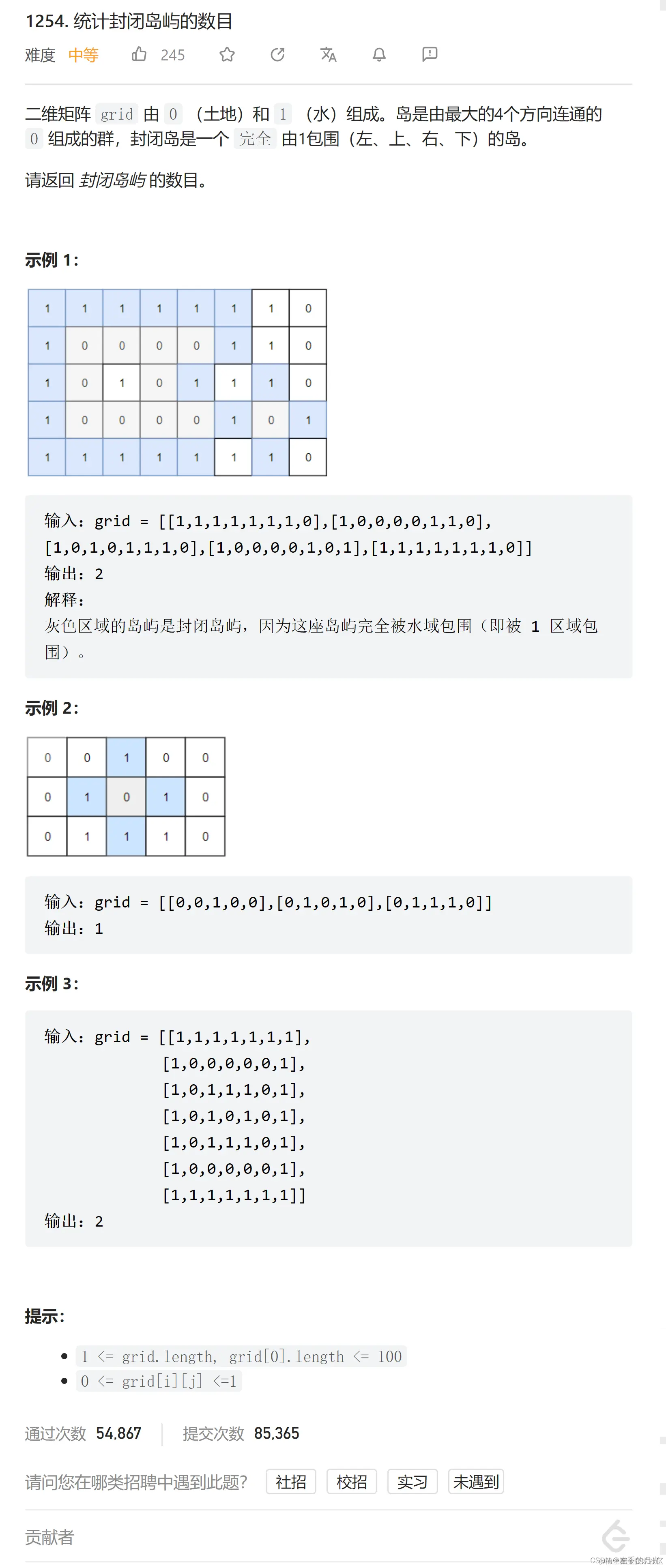1254.统计封闭岛屿的数目