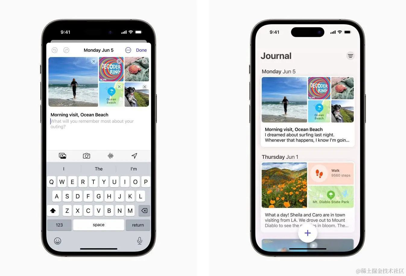 Journal 是一款全新 App,能够帮助 iPhone 用户通过日记的方式思考生活、表达感激,研究显示这有助于改善身心健康。Journal App 可利用设备端机器学习提供个性化建议,为用户带来日记灵感。