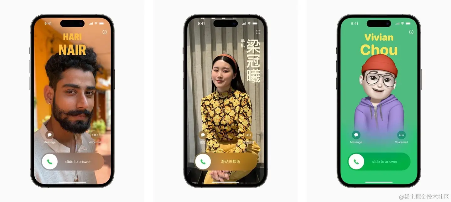 用户可以定制这些海报的显示方式,让来电观感焕然一新,选择精美的照片或拟我表情处理方案,以及吸睛的排版和字体颜色。Contact Posters 也可支持各类第三方通话 App。