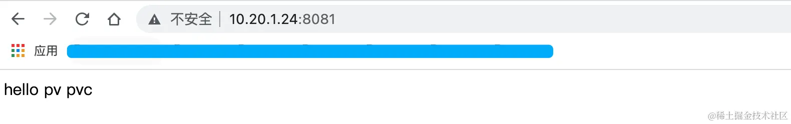 此时因为nginx下还没有html页面,所以看不到内容。此时到NFS服务器对应的目录/data/nfstest/share/pv1下增加index.html页面,然后刷新页面即可,界面如下: