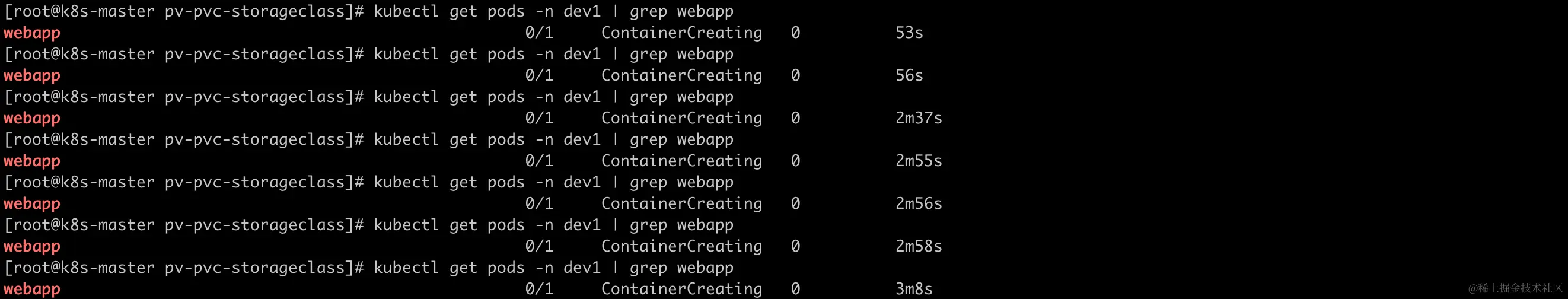 [root@k8s-master pv-pvc-storageclass]# kubectl get pods -n dev1 -owide | grep webapp