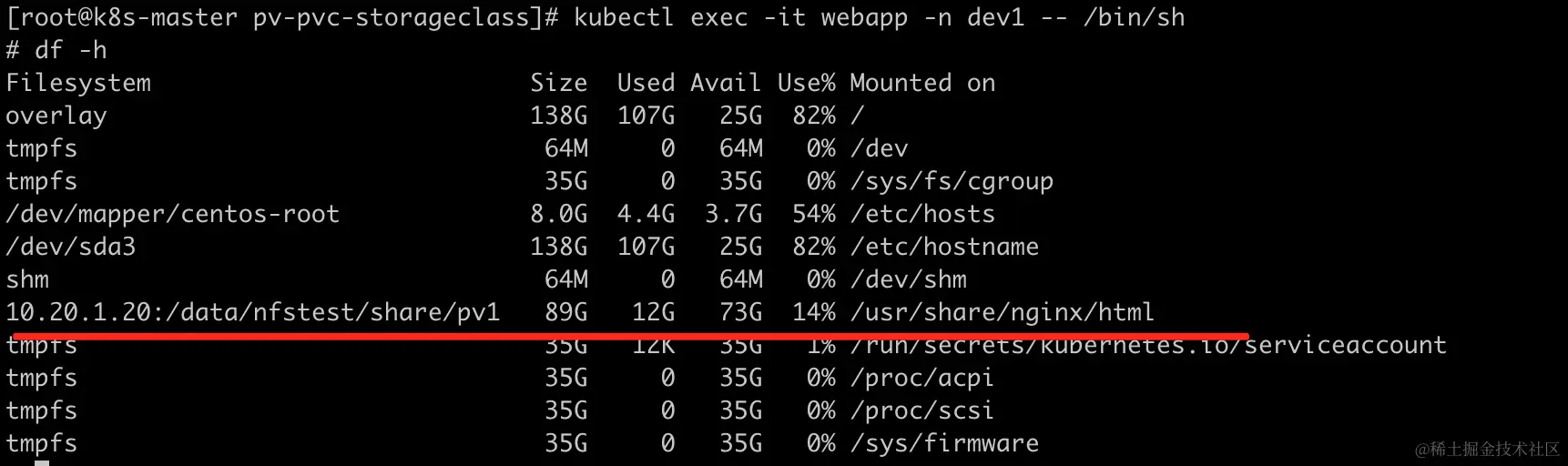 也可以通过进入到Pod内部,查看验证是够挂载成功。