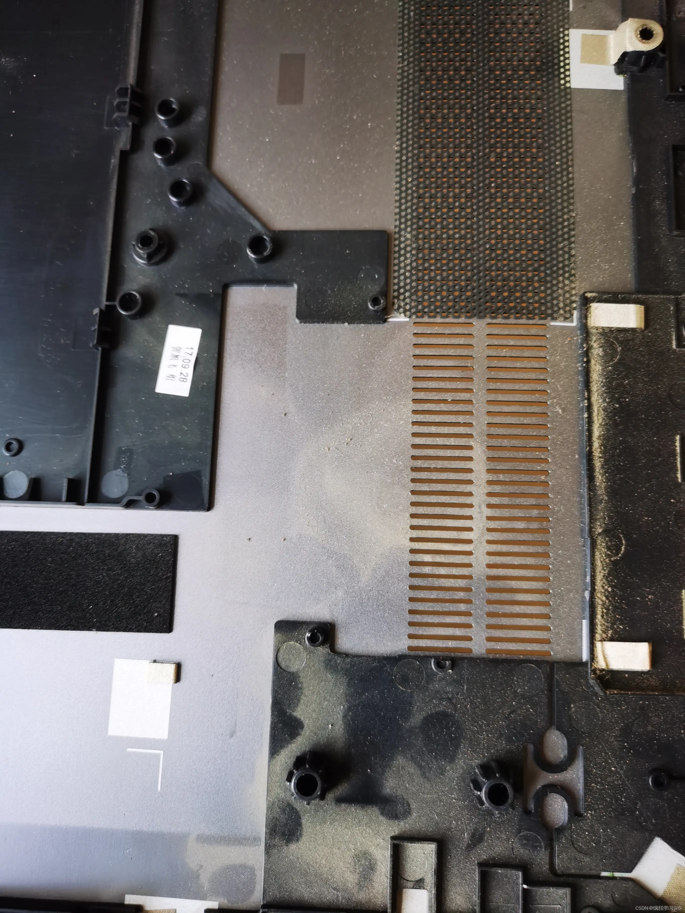 随后,对于我们刚刚去除的笔记本电脑底面(D面)的外壳,其内侧往往也会有一定程度的灰尘,如下图所示。