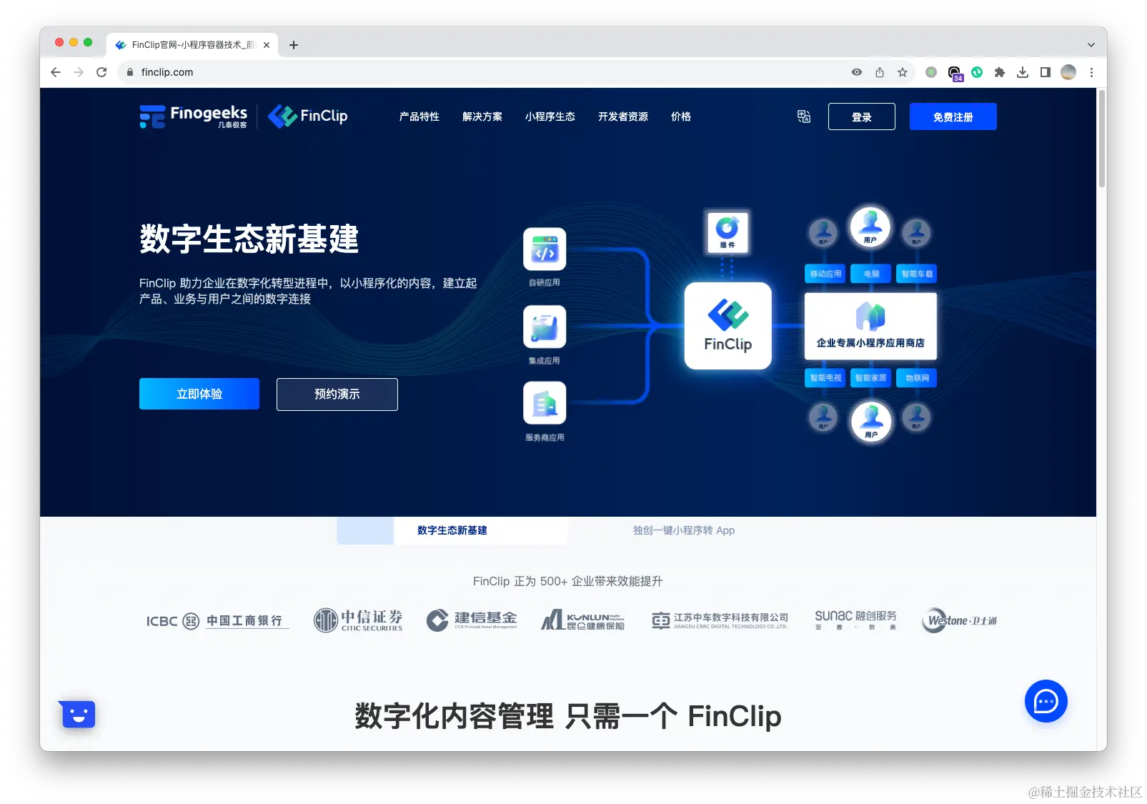 FinClip 能够帮你解决其中大多数关键问题,你只需要考虑“如何打造具有稀缺属性的业务应用”,或者“如何基于自己的商业模式打造自己的生态平台”,剩下与技术相关的能力都可以放心交给 FinClip,我们已经帮助多家来自金融、民生、政务、交通灯行业的客户打造自有超级 App 平台,此外我们也已经与多家伙伴建立生态合作关系,从而能够帮助您打造自己的小程序生态平台。