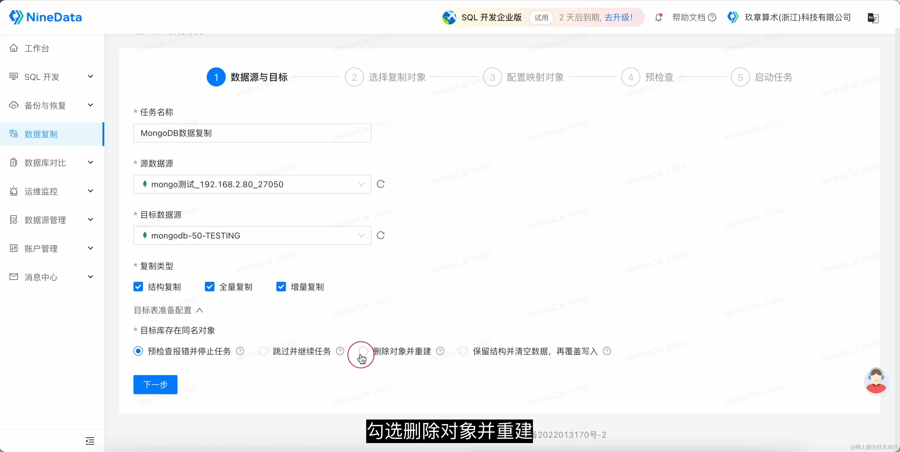 NineData 配置复制任务