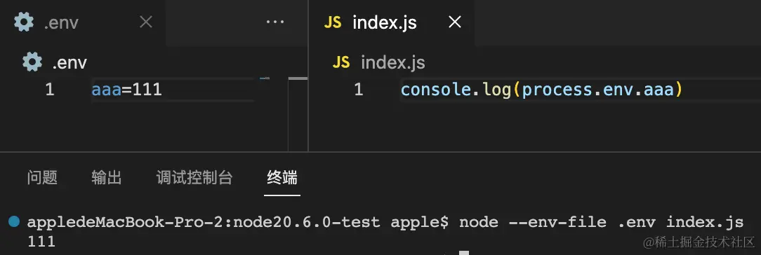 运行,需要使用node --env-file .env index.js指定应用哪个.env文件。