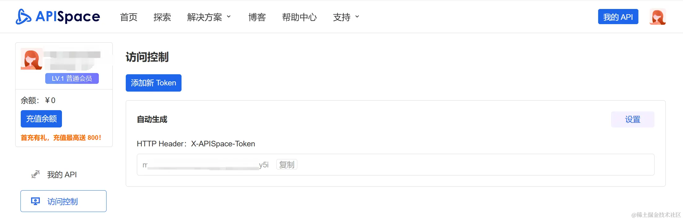 一旦选择了API供应商,企业需要获取访问权限,并获得API密钥或凭证。这些凭证将用于访问API并获取数据。比如:使用 APISpace 的话,登录即可获取到API密钥或凭证,在控制台的访问控制中可对自己Token进行管理。