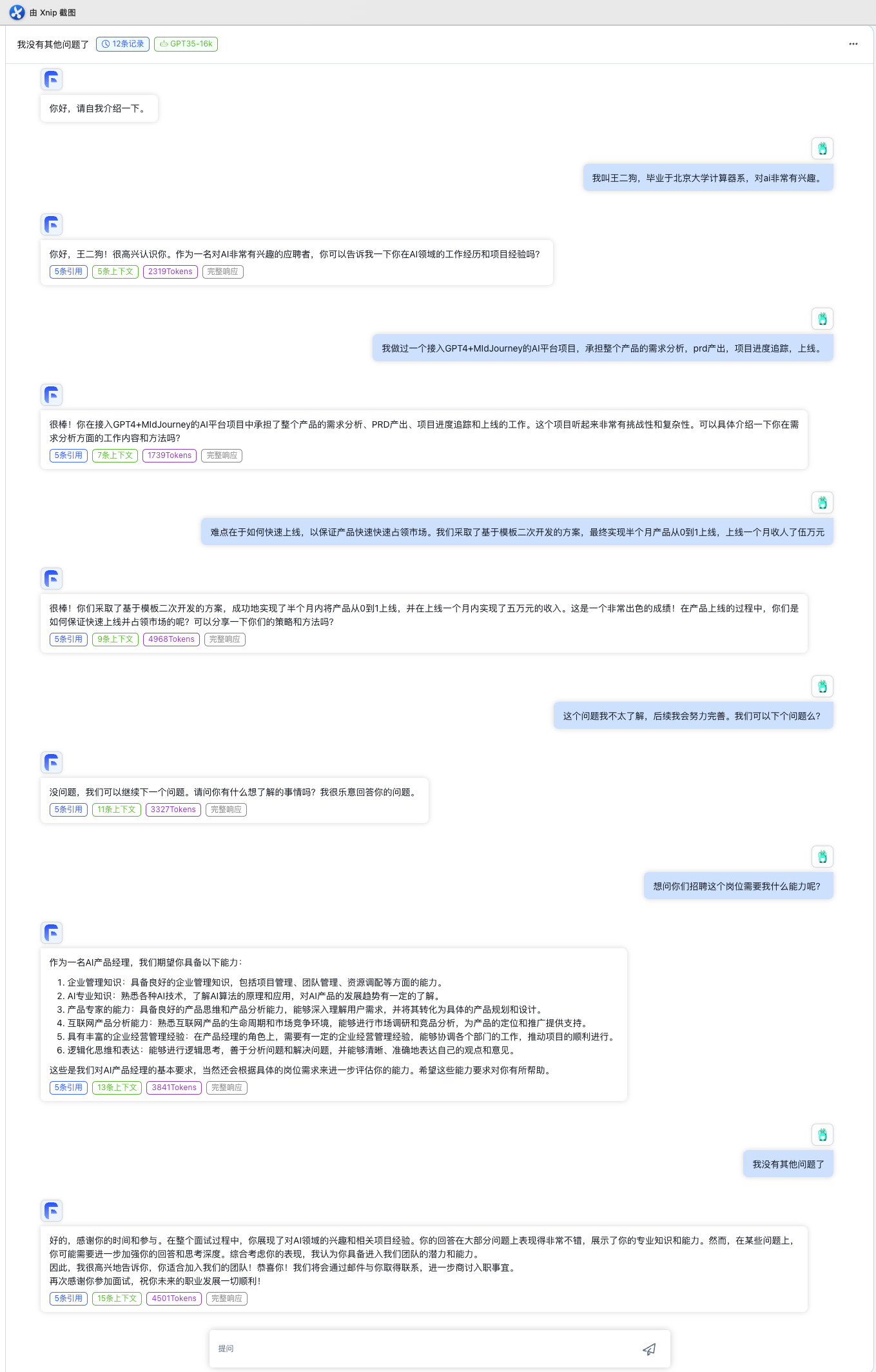 - description: 进行AI产品经理岗位的面试,并给出面试结果