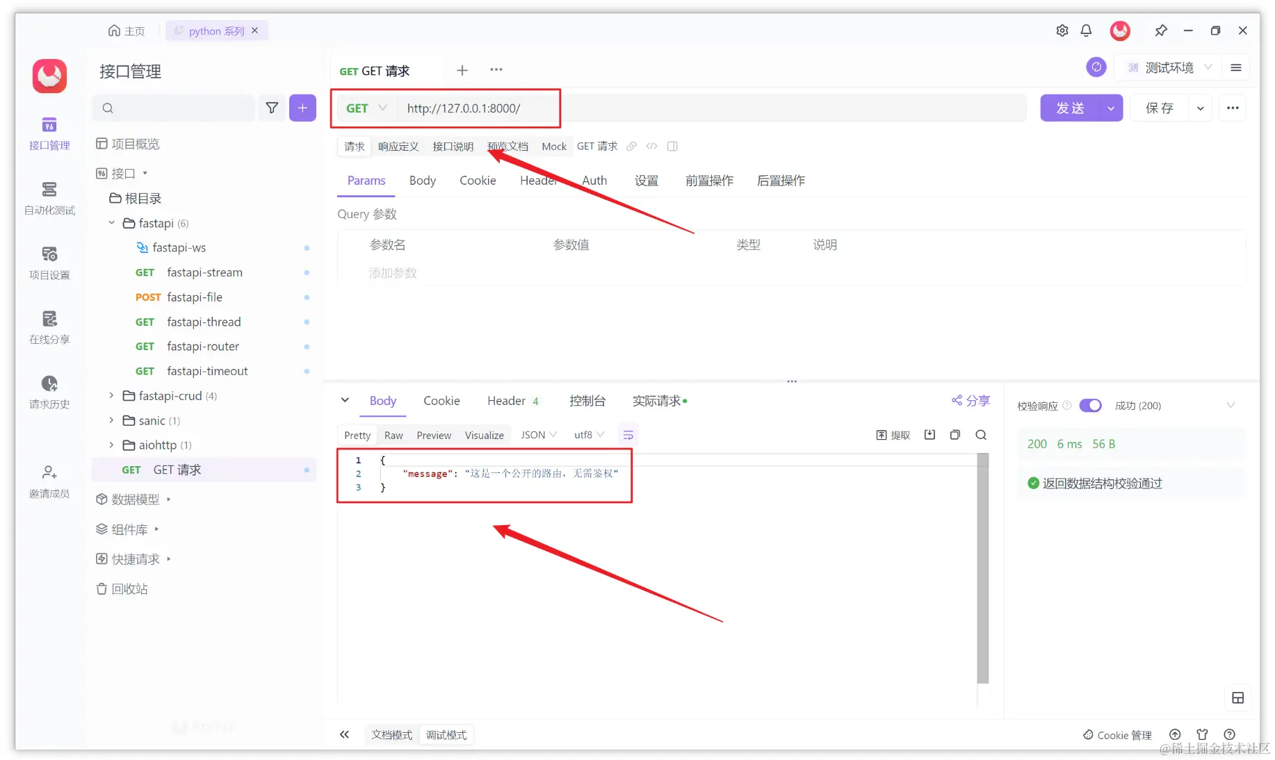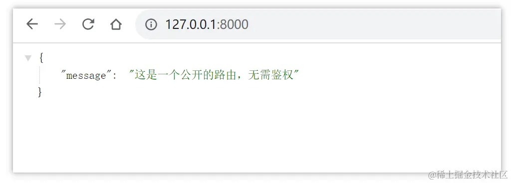 现在,你可以在浏览器或 API 客户端中访问 http://localhost:8000/secure-data/ 来测试需要鉴权的路由,并提供正确的用户名和密码。同时,也可以访问 http://localhost:8000/ 来测试公开的路由,无需鉴权。