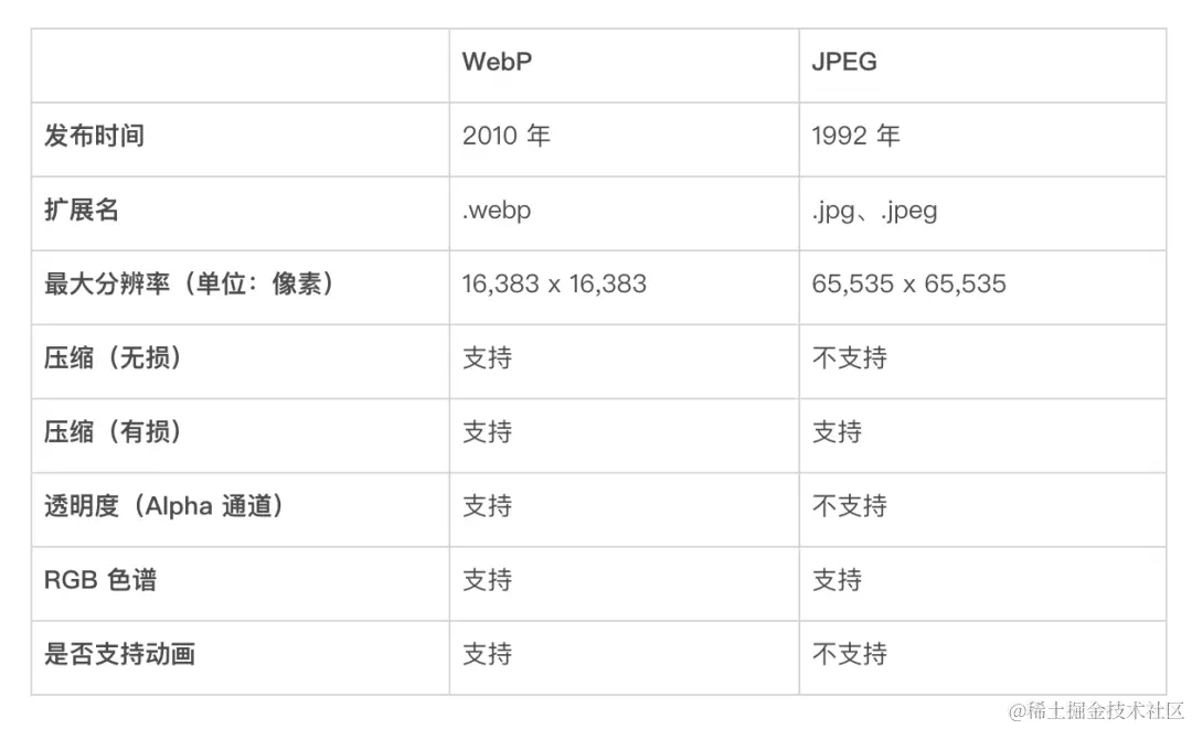 相较于传统的 PNG、JPG,甚至是动图 GIF 的格式,WebP 比它们的空间更小。根据谷歌的测试,WebP 格式的图片可以比 JPEG 格式的图片小 26%-34%,比 PNG 格式的图片小 25%-34 %。