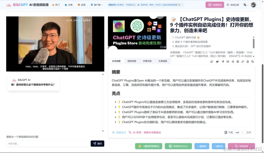 ▍BiliGPT:多平台视频内容快速总结