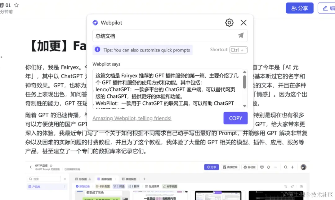 WebPilot 选中文本的快捷功能
