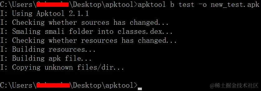 apktool b test -o new_test.apk