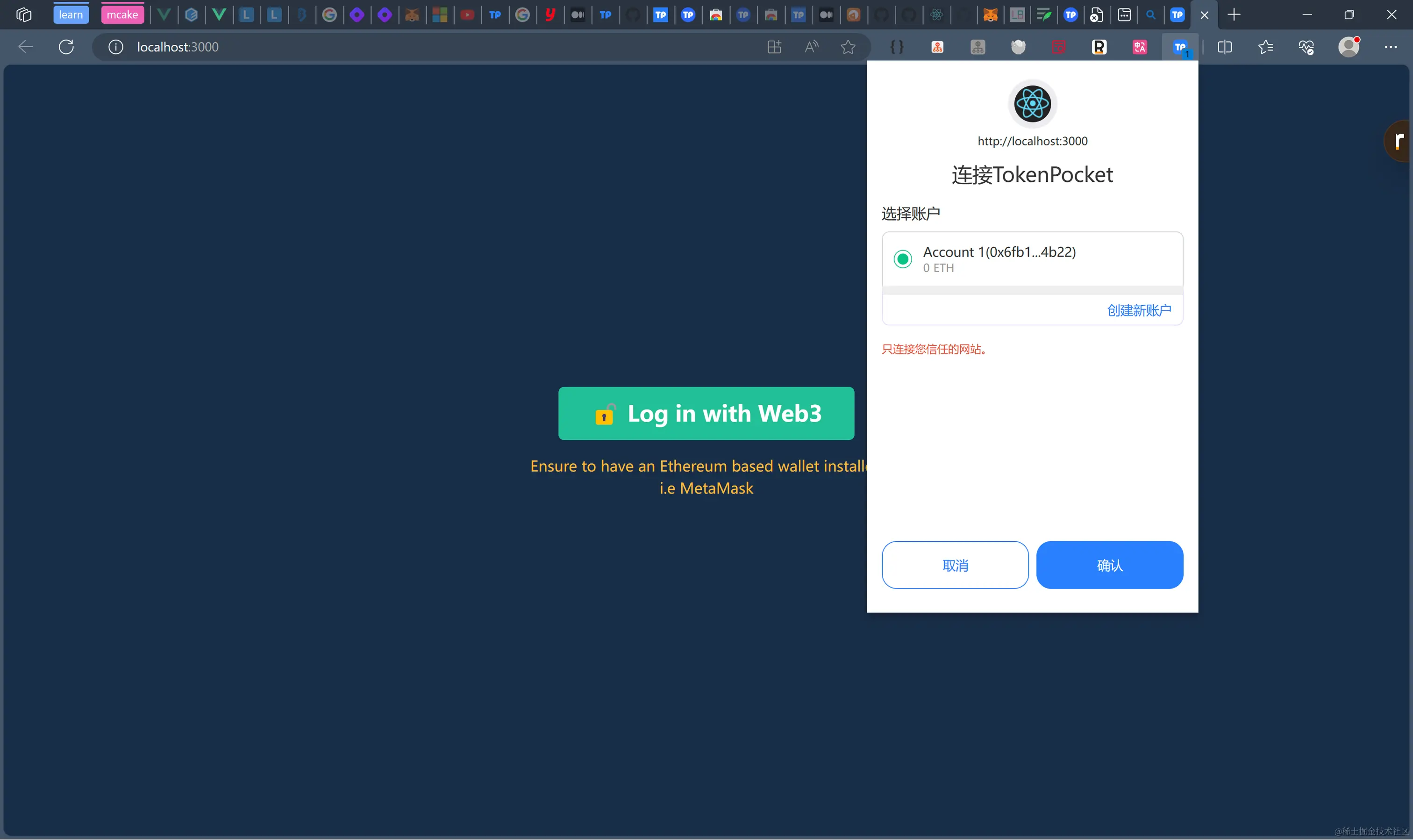 大概思路是,还需要把上面案例中的MetaMask钱包插件,替换成TokenPocket钱包插件,就能够实现TP钱包的授权登录流程。