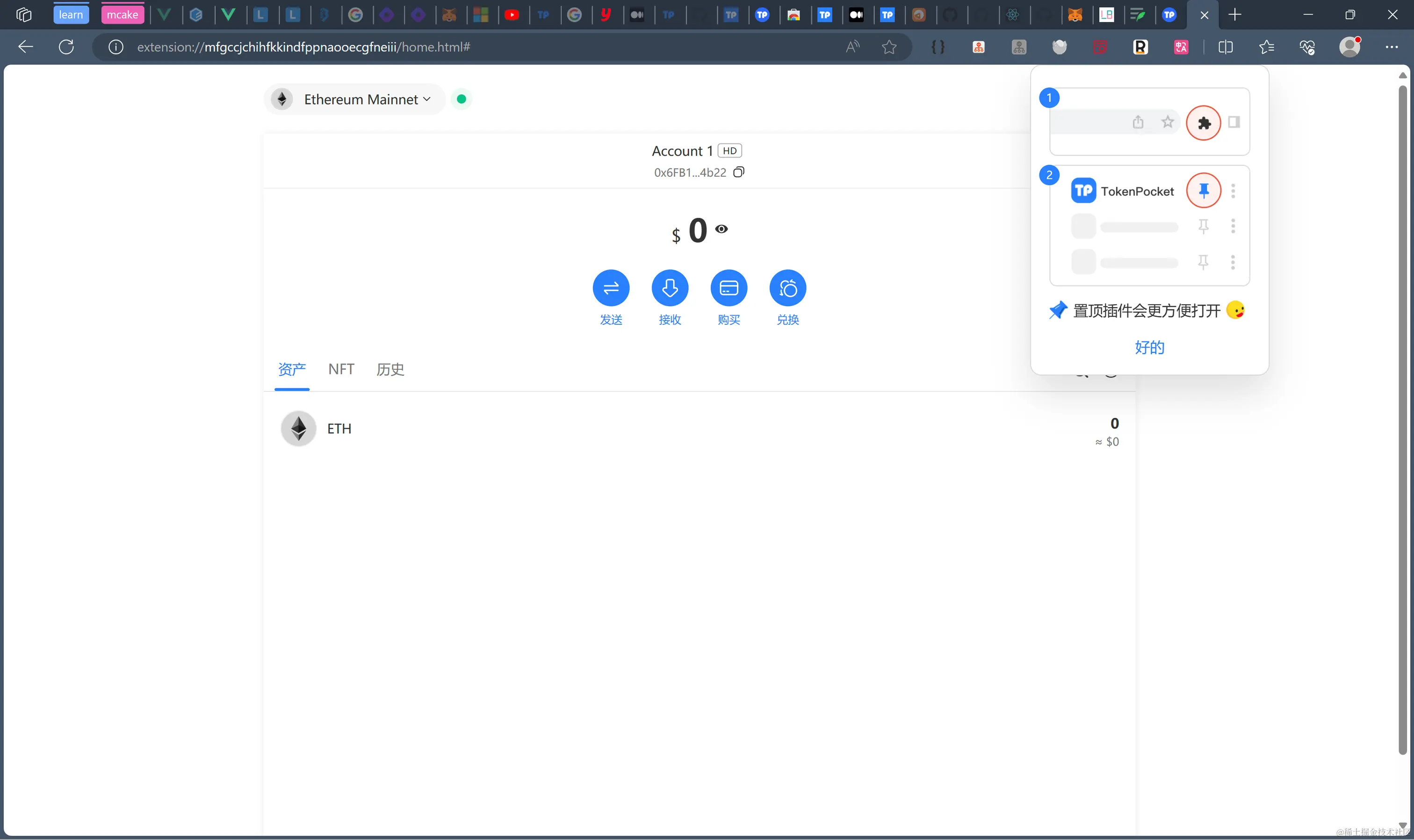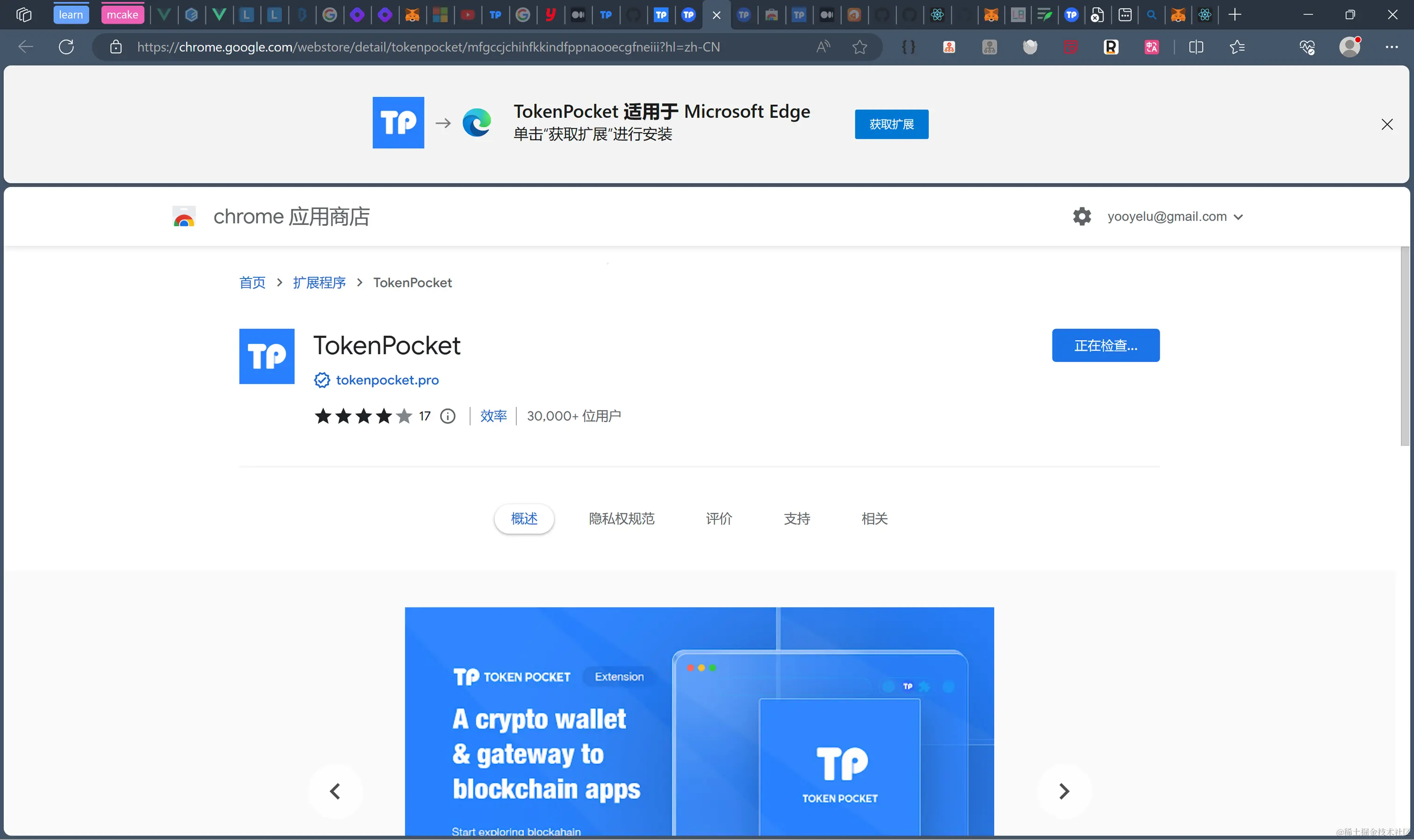 1、在Edge浏览器下载并安装TokenPocke插件。下载地址:extension.tokenpocket.pro/#/