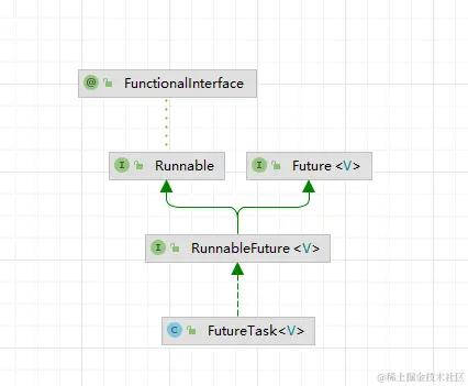 这个问题主要知道 FutureTask 的实现原理,FutureTask 继承体系如下: