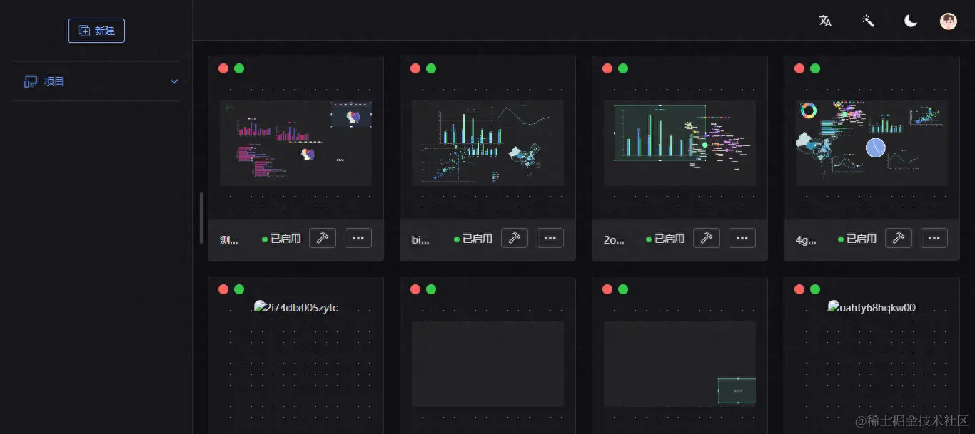 用户进入数据大屏设计界面后,点击左上角[新建],即可进入设计界面。