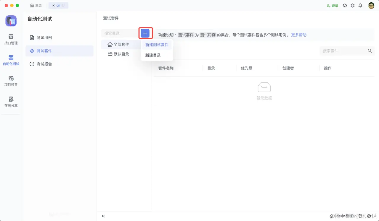 新建 测试套件